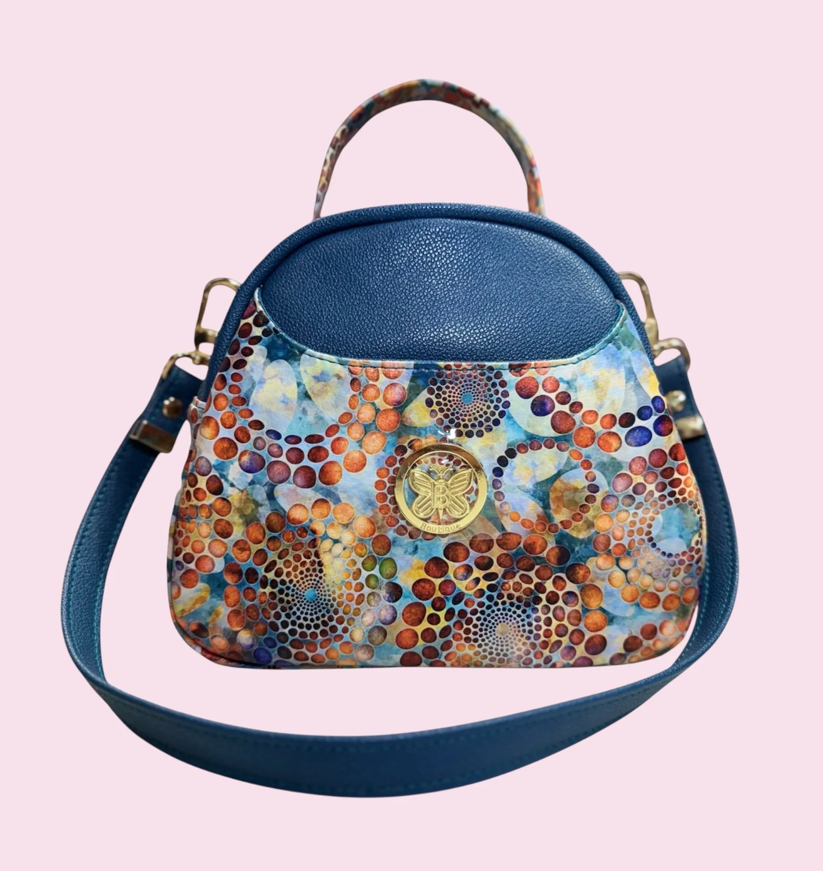 A hand-braided leather strap, solid brass hardware, and signature tassel accent create a refined, artisan look. Inside, a golden waterproof canvas lining offers durability and easy care, with a zippered pocket, slip pocket, and back exterior zip pocket for organization.